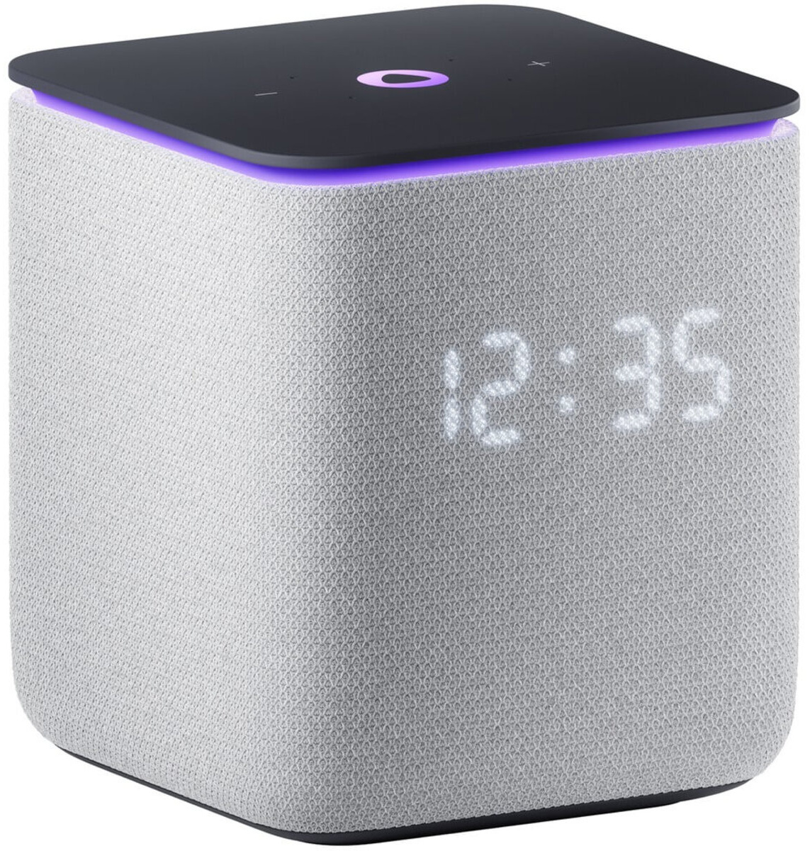 Приятный корпус с тканевой отделкой, доступный в разных расцветках текстильной части, не только придает колонке стильный внешний вид, но и создает приятные тактильные ощущения. Он также защищает динамики и слегка смягчает звук, а встроенный экран эффектно светится прямо на текстильной стороне.